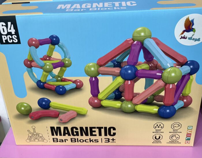 این مجموعه یک اسباب بازی خلاقانه با قدرت مغناطیسی است که امکان ساخت صدها طرح هندسی را برای کودکان فراهم می آورد.با استفاده از 64 قطعه از نوار و توپ مغناطیسی ، کودک شما شروع به شناخت مبانی مغناطیس و گرانش می کند.